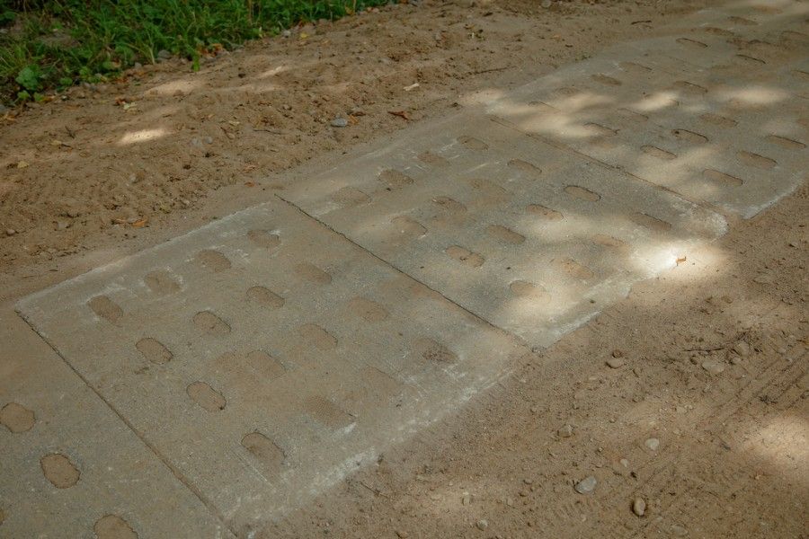 Przebudowany został odcinek o długości 330,77 m, w śladzie istniejącej jezdni. Jezdnia została wykonana z płyt betonowych ażurowych typu JOMB o wymiarach 75x100x12,5 cm, układanych śladowo w dwóch rzędach, zgodnie z przebiegiem kół pojazdów. Przestrzeń pomiędzy płytami oraz wypełnienie płyt zaprojektowano z kruszywa naturalnego łamanego.