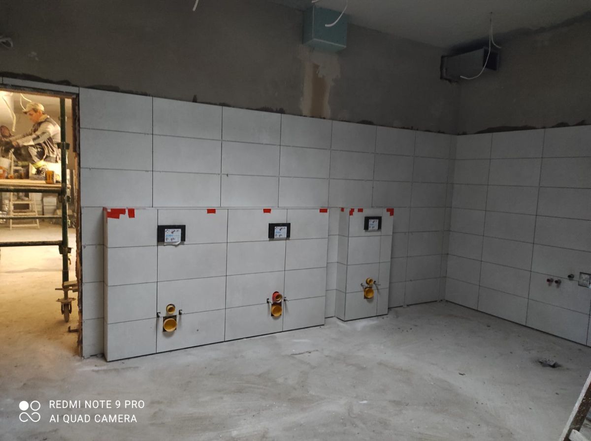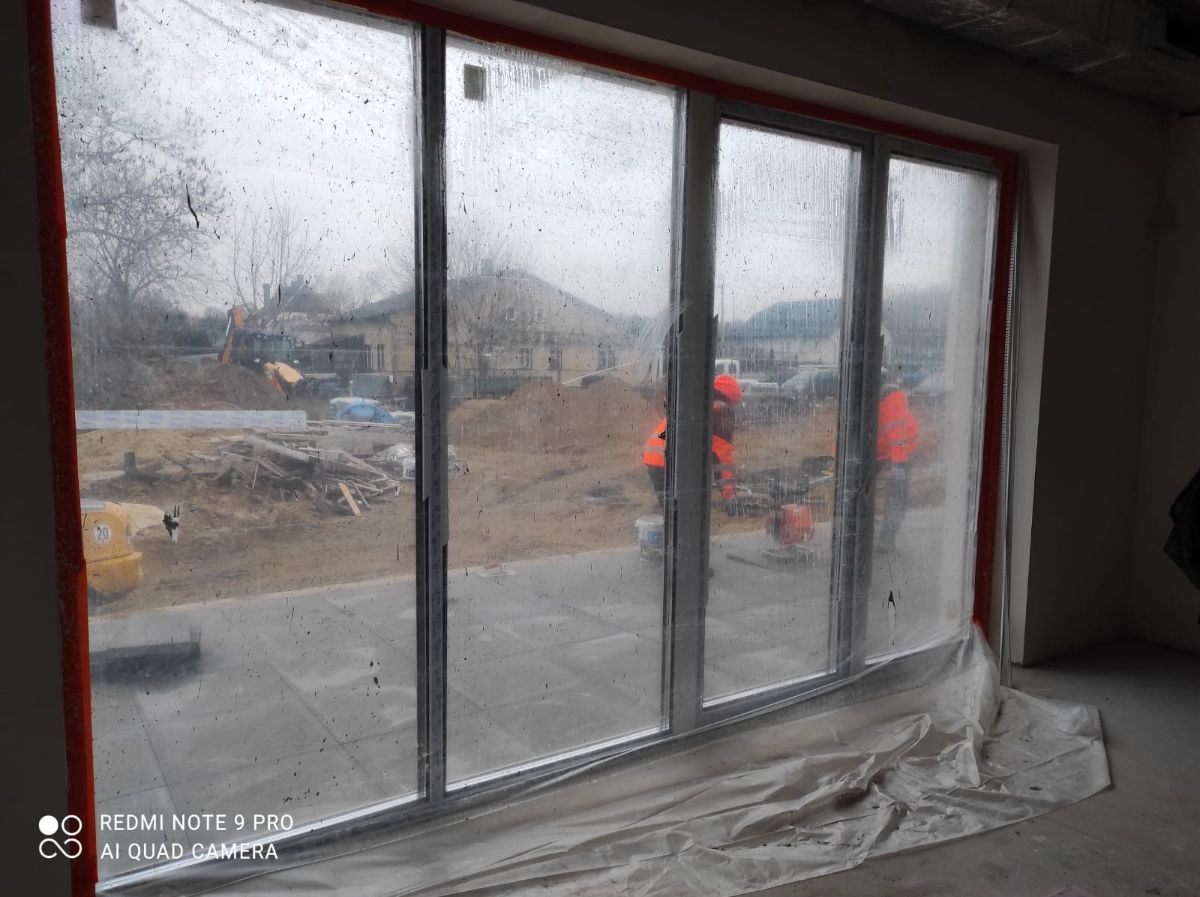 Wykonane zostały głównie roboty murarskie, ścianki działowe, częściowo posadzki, częściowo roboty wykończeniowe, a także roboty instalacyjne sanitarne i elektryczne. Wykonana już została elewacja wraz z ociepleniem budynku. Zamontowano nowe okna. Zainstalowane zostały pompy ciepła. Posadowiono też dodatkowe panele fotowoltaiczne. Roboty toczą się jednocześnie na wszystkich kondygnacjach, tj.: w piwnicy, na parterze oraz pierwszym i drugim piętrze w starej części szkoły oraz w dobudowanej części przedszkolnej. Wykonano już ponad 50% zakresu robót. Oprócz robót związanych z budynkiem w ramach inwestycji zaplanowano też zagospodarowanie terenu i montaż monitoringu.