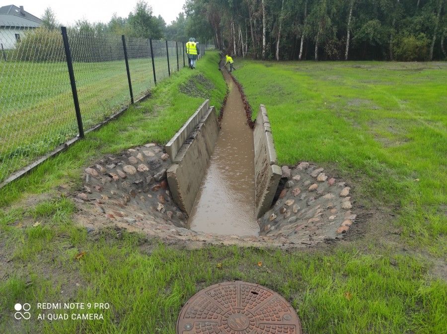 Jest to odcinek o długości 156,5 m, wykonano też 6 studni, urządzenia podczyszczające i wylot do rowu. Wyremontowano rów odwadniający o długości 200 m i miejscami umocniono jego brzegi geokratą i faszyną . Przejście pod jezdnią oraz chodnikiem wykonane zostało metodą przewiertu sterowanego. Woda deszczowa odprowadzana będzie do pogłębionego rowu. Wykonanie inwestycji było bardzo ważne, gdyż istniejąca kanalizacja deszczowa była w złym stanie technicznym i częściowo niedrożna.