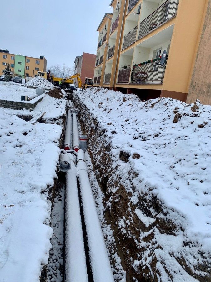 Budowa sieci ciepłownicza i przyłączy sieci ciepłowniczej z rur podwójnych preizolowanych typu TWIN.