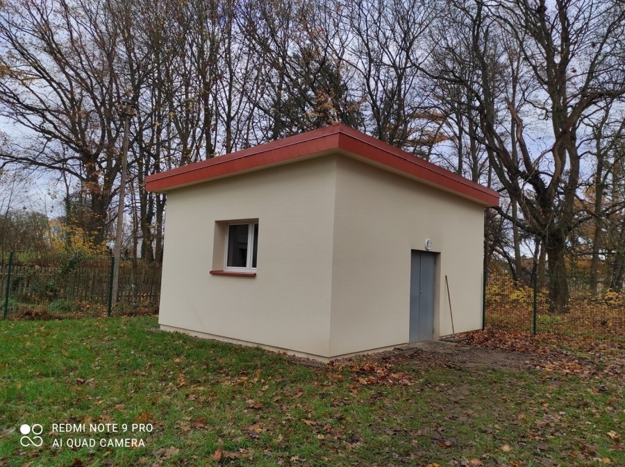 - modernizacja istniejącego obiektu hydroforni: termoizolacja budynku, pokrycie stropodachu blacha powlekaną trapezową, roboty remontowe wewnątrz budynku tj. terakota, glazura, malowanie ścian.