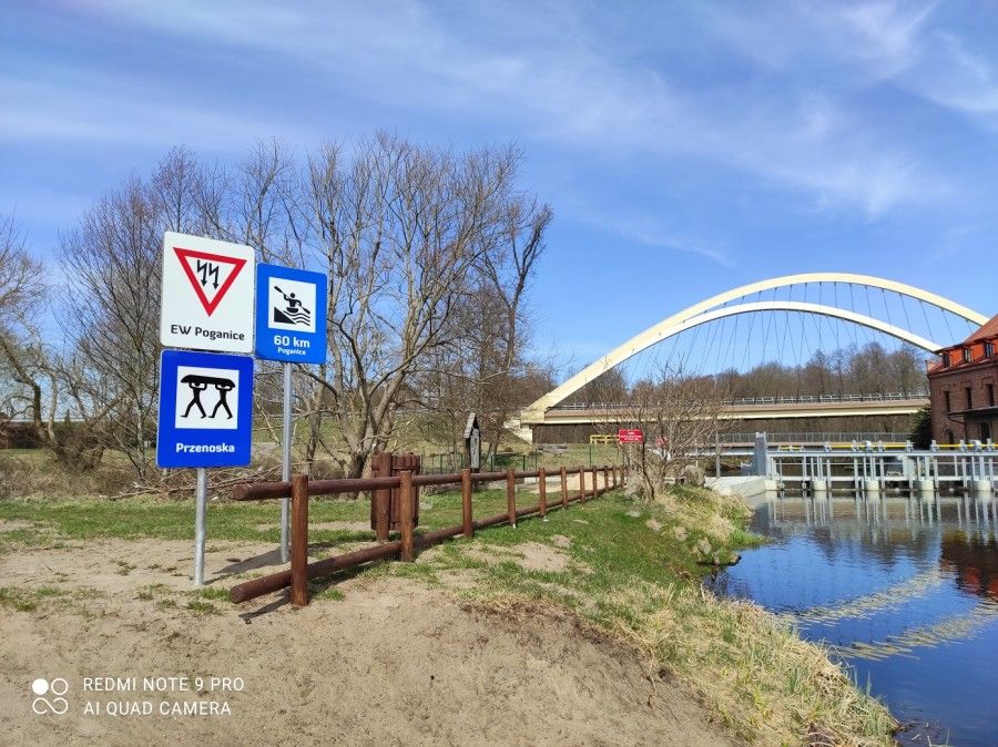 - Budowa przenoski wraz z oznakowaniem szlaku kajakowego w Poganicach: zaprojektowano i wykonano dwa pomosty (przenoski) przed i za elektrownią z konstrukcji stalowo-drewnianej o długości 6m i szerokości 2m, schody terenowe z drewna sosnowego o szerokości 150cm, utwardzono skarpy kiszką faszynową, zamontowano tablicę informacyjno-promocyjną, tablicę z oznakowaniem początku i końca przenoski, tablicę z regulaminem korzystania z infrastruktury kajakowej, kosz na odpady, ogrodzenie panelowe o wysokości 1,5m i długości 30mb.