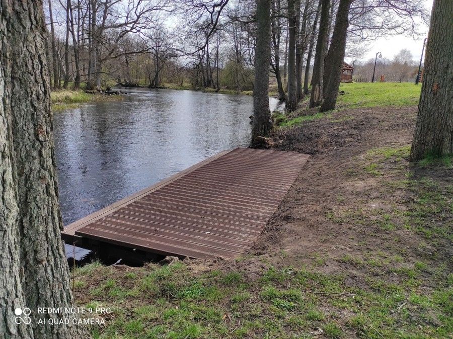 - Budowa drogi do istniejącej przystani kajakowej – miejsca wodowania lub podejmowania kajaków i placu rekreacyjnego w Łupawie: zaprojektowano i wykonano drogi dojazdowe do istniejącej przystani kajakowej: nawierzchnia z kostki betonowej o pow. 540m2 oraz nawierzchnia z ekokraty o pow. 180m2, pomost z konstrukcji stalowo-drewnianej o długości 6m i szerokości 2m do wyjścia kajakarzy na brzeg oraz do wodowania kajaków, utwardzono skarpę kiszką faszynową, zamontowano kosz na odpady, tablicę informacyjno-promocyjną, tablicę oznakowania wodnego, tablicę oznakowania drogowego, tablicę z regulaminem korzystania z infrastruktury kajakowej.