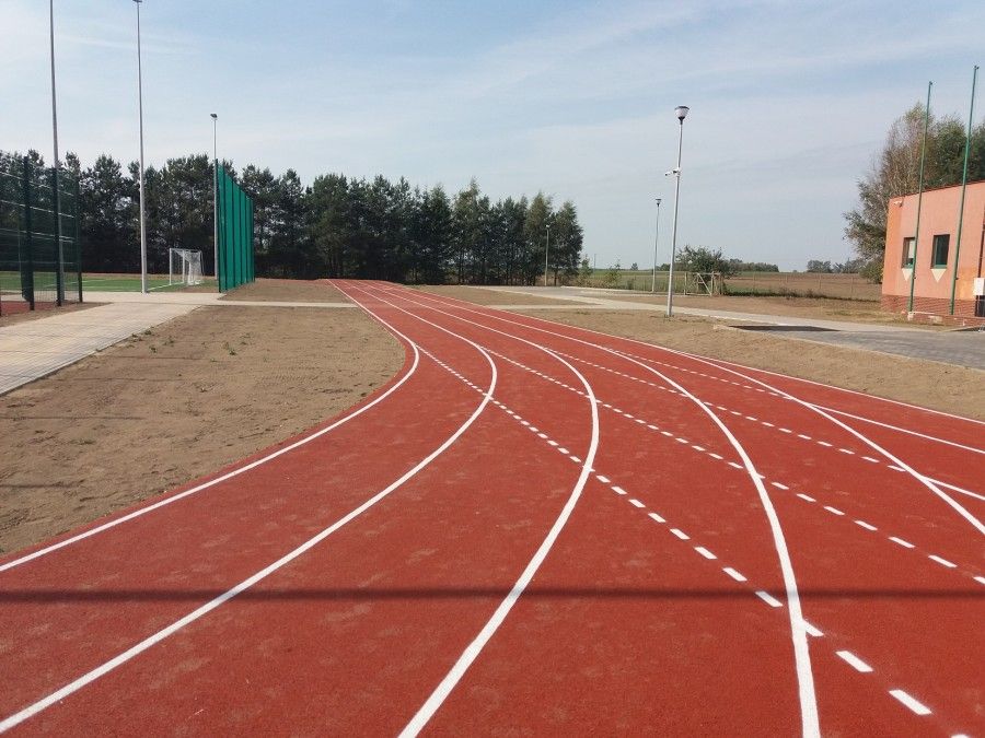 - bieżni i skoczni do skoku w dal z zeskokiem (piaskownica) o wymiarach 4 x 8m; Bieżna czterotorowa o długości 250,00 m po obwodzie w tym odcinek prosty 70,00 m, o nawierzchni poliuretanowej;