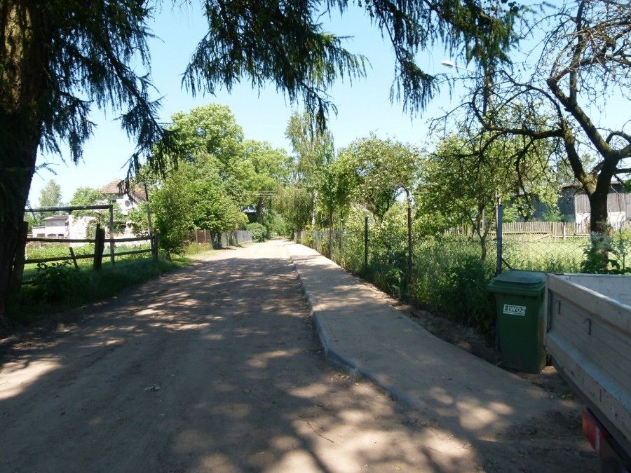 W ramach inwestycji wykonano remont nawierzchni drogowej z kruszywa drogowego o długości 100 mb i szerokości  3,0 m oraz wykonano chodnik z płyt betonowych o długości 70 mb i szerokości 1,0  m (materiał z odzysku). Wartość inwestycji: 19.445,95 zł.