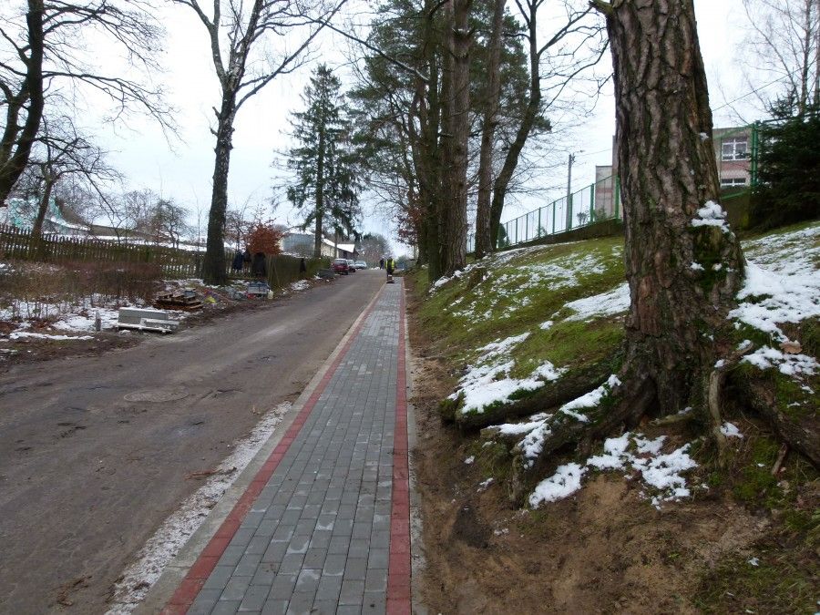 Przebudowany został istniejący chodnik w miejscowości Łupawa: od drogi powiatowej do Zespołu Szkół w Łupawie, o długości 160 mb i szerokości 1m.