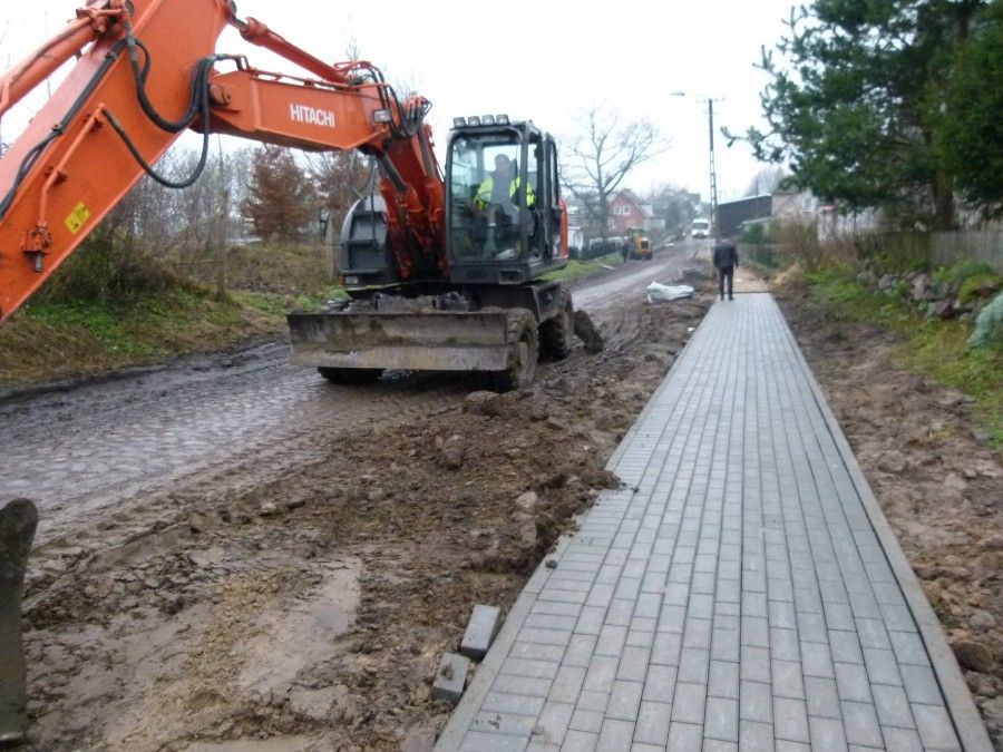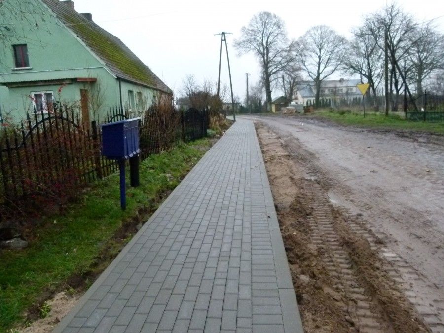 W miejscowości Żychlin wykonano chodnik w ciągu drogi powiatowej nr 1189G o długości ok. 420 mb i szerokości 1,50 m wraz z 12 zjazdami do posesji mieszkańców. Zadanie realizowano z powierzonego materiału tj. kostka betonowa o grubości 8 i 6 cm, krawężniki betonowe i obrzeża. Materiały na budowę chodnika zabezpieczone zostały przez Zarząd Dróg Powiatowych w Słupsku. Prace rozpoczęto 16 listopada 2015r., a zakończono 17 grudnia 2015r. Wykonawcą było przedsiębiorstwo Lampe Services z Lęborka.