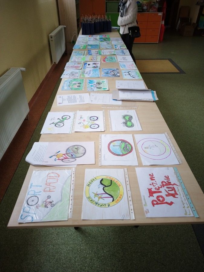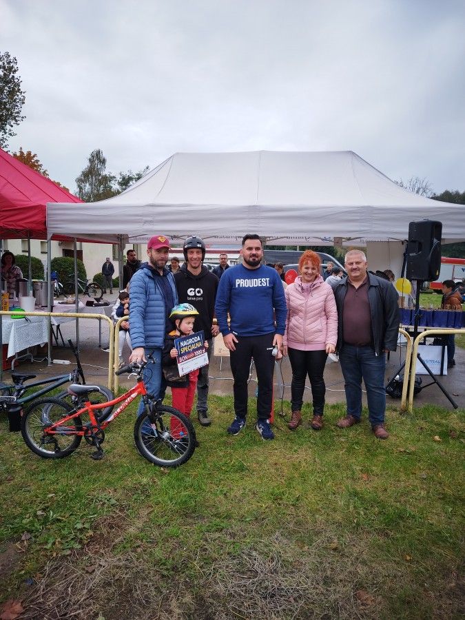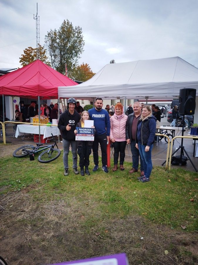Zwieńczeniem obchodów było uroczyste wręczenie nagród dla uczestników konkursów przygotowanych w ramach organizowanego wydarzenia. Wyróżnienia z rąk Wójta Gminy Potęgowo oraz gratulacje od Dyrektor Gminnego Ośrodka Kultury w Potęgowie, Przewodniczącego Rady Gminy Potęgowo oraz naszego gościa specjalnego – Pana Bartosza, za prace plastyczne „Mój wymarzony rower” odebrali: Basia Kubicka z klasy 0 SP w Potęgowie za zajęcie III-go miejsca, Nazar Ivanchenko z klasy I SP w Skórowie, w którego imieniu nagrodę za zajęcie II miejsca odebrała Dyrektor SP w Skórowie, Pani Agnieszka Fir oraz Maja Różańska, uczennica klas III SP w Łupawie, która została zwycięzcą konkursu. Wszystkie przygotowane prace były pomysłowe, a wybór trzech najlepszych stanowił nie lada wyzwanie dla komisji konkursowej. Drugi konkurs dotyczył wymyślenia nazwy dla nowego toru rowerowego. W tej kategorii, pomimo wielu pięknych prac, tylko dwie spełniły warunki regulaminu, z których II miejsce zajęła Zosia Kubicka z SP w Potęgowie, natomiast nagroda główna powędrowała do uczennicy SP w Łupawie - Liliany Pokultinis za niezwykle pomysłową i chwytliwą nazwę „Łuperion”. Wszystkim uczestnikom konkursów gratulujemy kreatywności i staranności oraz zapraszamy po odbiór dyplomów i nagród pocieszenia do Gminnego Ośrodka Kultury w Potęgowie.
