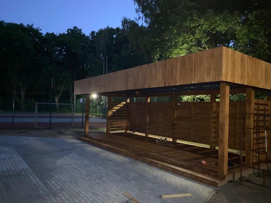 W związku z realizacją zadania pn. Zagospodarowanie terenu przy SP w Łupawie i leśnej ścieżki edukacyjnej” nr umowy 01824-6935-UM1112898/23 z dnia 21.11.2023r., na terenie szkoły została wybudowana wiata sceniczna o konstrukcji drewnianej o pow. 35 m2, zostały zamontowane ławki pomiędzy zadrzewieniem, a także wykonane miejsce na ognisko z rusztem grillowym. Wiata została oświetlona, a plac przed obiektem wyłożono kostką polbrukową. Ciekawie została też zagospodarowana leśna ścieżka edukacyjna na terenie Nadleśnictwa Łupawa, o długości ok. 2 km na odcinku od pergoli w kierunku parkingu na granicy z Gminą Czarna Dąbrówka. Ścieżka została wyposażona znaki kierunkowe, tablice informacyjne, ławki, barierkę drewnianą oraz barierkę o długości 100m w formie liny rozwieszonej na drewnianych plikach. Barierki są zabezpieczeniem na stromych odcinkach ścieżki.