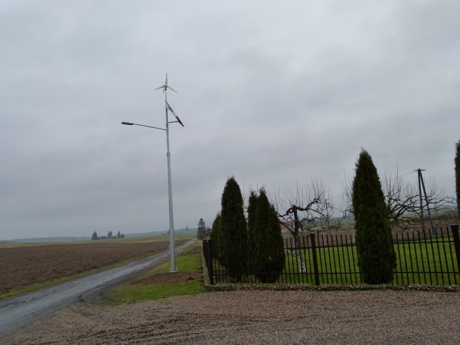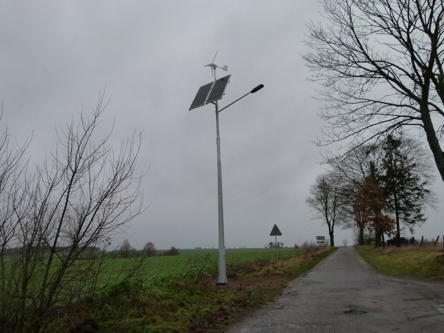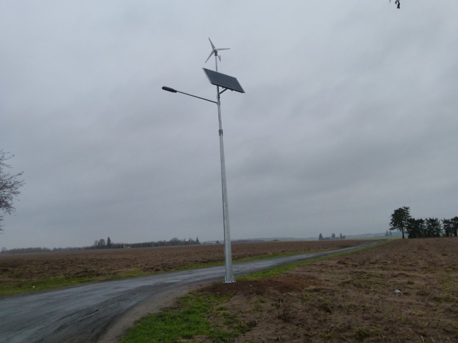 W grudniu dokonano odbioru 10 szt. lamp hybrydowych, w których jako źródło zastosowano nowoczesną oprawę LED o mocy 56W zasilaną z zamontowanych paneli fotowoltaicznych o mocy 250W/24V i turbiną wiatrową o mocy 400 W/24V. Cechą lampy hybrydowej jest autonomiczność punktów świetlnych i to, że nie trzeba jej podłączać do sieci energetycznej, a dzięki zastosowaniu turbiny wiatrowej, można wydłużyć czas jej pracy, nawet w niesprzyjających warunkach. Lampy hybrydowe stanowią doskonałą alternatywę dla klasycznego oświetlenia ulicznego, zwłaszcza w miejscach odległych od infrastruktury, dla których nieopłacalne jest doprowadzenie energii elektrycznej takich jak np. skrzyżowania dróg. Ponadto instalacja lamp hybrydowych jest szybka i łatwa, nie wymaga pozwolenia na budowę, skomplikowanej dokumentacji projektowej ani konsultacji z lokalnym zakładem energetycznym.